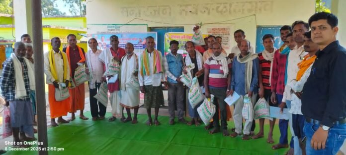 माकड़ी/काटागांव ~ कोंडागांव जिले के विकासखंड माकड़ी के ग्राम काटागॉव में बुधवार 10 दिसम्बर को पीकेविवाय जैविक खेती का एक दिवसीय प्रशिक्षण कृषि एवं जैव प्रद्योगिक विभाग की ओर से आयोजित किया।गया जिसमे वरिष्ठ कृषि विकास अधिकारी मीना नेताम, बीटीएम भूपेंद्र सिन्हा, आरएईओ आलोक यादव, सरपंच मोती राम, रामेस्वर, ब्रह्मलाल, शिव, सागराम गुदराम, राजू, राजमन, रुपसिंघ, लच्छू किसान शामिल हुए। साथ यहाँ किसानों को रागी बीज का वितरण किया गया।