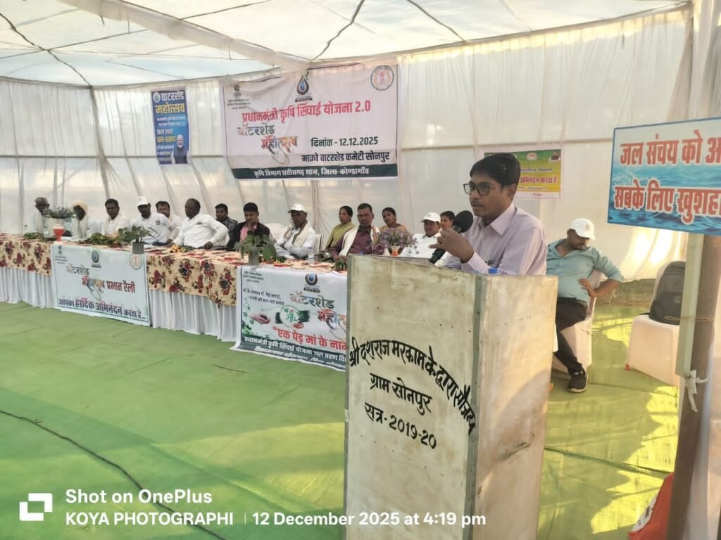 हरवेल/बड़ेराजपुर 12 दिसंबर 2025, शुक्रवार। राज्य शासन और जिला प्रशासन के निर्देशानुसार कोंडागांव जिले के सोनपुर माइक्रो वॉटरशेड में शुक्रवार को परियोजना स्तरीय वॉटरशेड महोत्सव का आयोजन बड़े उत्साह और जन-सहभागिता के साथ किया गया। महोत्सव का उद्देश्य भूमि एवं जल संरक्षण के महत्व को जन-जन तक पहुंचाना था।वरिष्ठ अधिकारियों के मार्गदर्शन में आयोजन*यह कार्यक्रम माननीय कलेक्टर श्रीमती नुपुर राशि पन्ना के निर्देशन में तथा परियोजना प्रबंधक सह उप संचालक कृषि, डी.पी. टांडे के मार्गदर्शन में संपन्न हुआ। परियोजना अधिकारी सी.एस. कश्यप ने