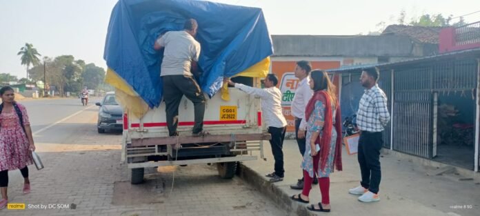 हरवेल/केशकाल ~ कोंडागांव जिले के ब्लाक मुख्यालय केशकाल में 11 नवम्बर 2025 को श्रीमती नूपूर राशि पन्ना के निर्देशानुसार खरीफ विपणन वर्ष 2025-26 के अंतर्गत धान खरीदी प्रक्रिया के दौरान धान के अवैध परिवहन और भंडारण पर कड़ी निगरानी रखी जा रही है।इसी क्रम में अनुविभागीय अधिकारी (राजस्व) केशकाल सुश्री आकांक्षा नायक के नेतृत्व में राजस्व, खाद्य एवं मंडी विभाग की संयुक्त टीम ने केशकाल क्षेत्र में वाहनों की जांच की, जिसमें एक
