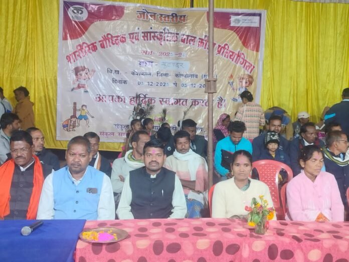 केशकाल/खुटपदर~ विधानसभा केशकाल अंतर्गत विकास खंड केशकाल के ग्राम पंचायत खुटपदर में ब्लाक स्तरीय बाल क्रीड़ा प्रतियोगिता समापन किया गया। समापन के शुभ अवसर पर कोंडागांव जिला पंचयात के उपाध्यक्ष श्री हिरासिंह नेताम बतौर मुख्य अतिथि के रूप में शामिल हुए, जहां उनका मांदरी नृत्य ,बाजें गांजे के साथ आतिशबाजी करते हुए भव्य स्वागत किया गया। इस अवसर पर हिरासिंह नेताम के द्वारा फाइनल खेल का सिक्का