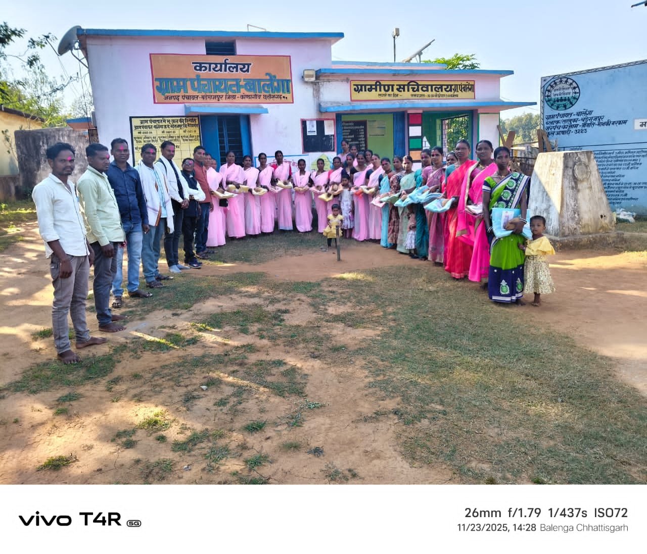हरवेल/बालेंगा ~ कोंडागांव जिले के विकासखण्ड बड़ेराजपुर अंतर्गत ग्राम पंचायत बालेंगा पंचायत परिसर में 23 नवम्बर को मितानिन दिवस धुमधाम के साथ मनाया गया जिसमें विशिष्ट अतिथि सम्माननीय सुकमन नेताम जनपद अध्यक्ष बड़ेराजपुर,नारायण नेताम उपाध्यक्ष जनपद पंचायत बड़ेराजपुर,सुकमन मरकाम सरपंच बालेंगा, साहेब नेताम उपसरपंच बालेंगा,सोनाराम मरकाम,परमिला नेताम,सुरेश मरकाम,रामजी नेताम पंच,अजय नेताम, सुकडू नेताम रोजगार सहायक,मितानिन दीदी, आंगनबाड़ी कार्यकर्ता एवं सहायिकाओ को सम्मानित किया गया ।