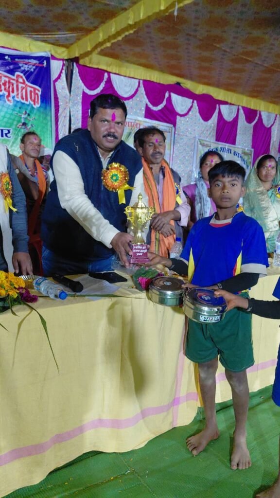 आत्मविश्वास भी बढ़ता है। उन्होंने कहा कि ग्रामीण क्षेत्रों में उभरती प्रतिभाओं को उचित सम्मान और प्रोत्साहन दिया जाना चाहिए, ताकि वे प्रदेश और देश का नाम रोशन कर सकें। इस अवसर पर जनप्रतिनिधि, वरिष्ठ कांग्रेस जन तथा पंच-सरपंच सहित बड़ी संख्या में ग्रामीणजन उपस्थित थे। कार्यक्रम में बच्चों ने खेल कौशल का प्रदर्शन किया और विजेताओं को सम्मानित किया गया। संतराम नेताम ने बच्चों को खेलों में निरंतर भाग लेने और अपने कौशल को और विकसित करने हेतु प्रेरित किया। उन्होंने आश्वासन दिया कि सरकारी और स्थानीय संस्थाओं के सहयोग से ग्रामीण खेलों को और सशक्त बनाया जाएगा। इस कार्यक्रम ने न केवल बच्चों में खेलों के प्रति रुचि बढ़ाई, बल्कि ग्रामीण क्षेत्र में खेलों के विकास के लिए मार्गदर्शन और प्रेरणा का संदेश भी दिया। इस अवसर पर कार्यक्रम की अध्यक्षता कर रहे डुंडाबेड़मा सरपंच श्री राजमन मंडावी,श्री कपिलकांत नाग (जिला पंचयात सदस्य),घसियाराम सेठिया (जनपद सदस्य), प्रवीण अग्निहोत्री,शुभम राणा, रमेश बेलसरिया,संतेर कोरचा,जागेश पटेल,वीरेंद्र बघेल,सरपंचगण, पंचगण व समस्त जनप्रतिनिधि सहित ग्रामीण उपस्थित रह