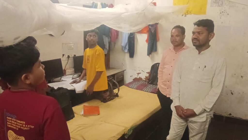 प्री मैट्रिक बालक छात्रावास का रात में आकस्मिक निरीक्षण करने पहुंचे जि.पं. उपाध्यक्ष हिरासिंह नेताम।