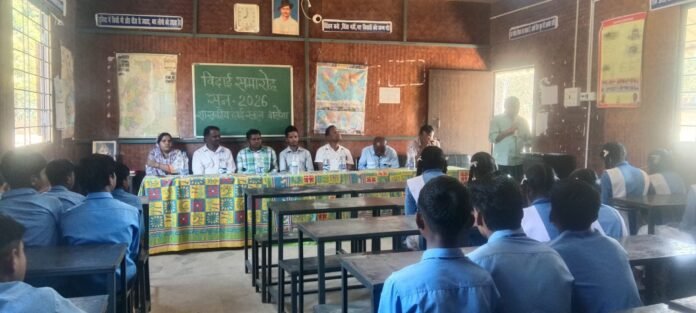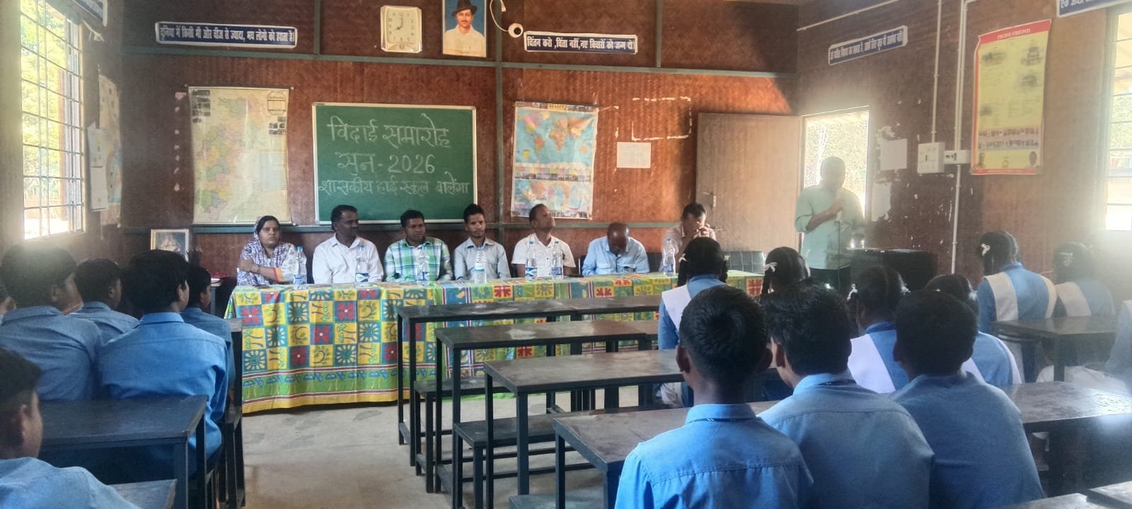 बड़ेराजपुर/बालेंगा~ कोंडागांव जिले के विकासखण्ड बड़ेराजपुर अंतर्गत ग्राम पंचायत बालेंगा स्थित शासकीय हाई स्कूल प्रांगण में मंगलवार 17 फरवरी को कक्षा 9वीं के भाई बहनों के द्वारा कक्षा 10 वीं के विधार्थियों को स्कूल परिसर में भावभीनी विदाई दी गई सर्व प्रथम कार्यक्रम की शुरुआत मां सरस्वती की छायाचित्र पर दीप प्रज्ज्वलित करके शुभारंभ किया गया जिसमें कक्षा 10 वीं के विधार्थियों के द्वारा स्कूल में बिताए गए दिन को साझा किया गया सभी भावुक हुए प्रभारी प्राचार्य रामसिंह खुसार्मे और संस्था के सभी स्टाफ के द्वारा विधार्थियों के लिए उज्ज्वल भविष्य की शुभकामनाएं देते हुए कहा कि आप सभी अच्छे से पढ़ाई करे और अच्छे नम्बरों से पास हो और स्कूल का नाम भी रोशन करें अंत में विधार्थियों ने सामुहिक फोटो भी खिंचवाए इस कार्यक्रम को सफल बनाने में मुख्य अतिथि शिवलाल मरकाम,अध्यक्षता कर रहे अजय नेताम, स्टॉप के प्रभारी प्राचार्य रामसिंह ख़ुर्सामे सर,नाग सर,छबिलाल साहू सर,रूबाब मेम,साहू सर ,कश्यप सर ,रमेश नेताम और हाई स्कूल बालेंगा के सभी छात्र छात्राएं उपस्थित रहें