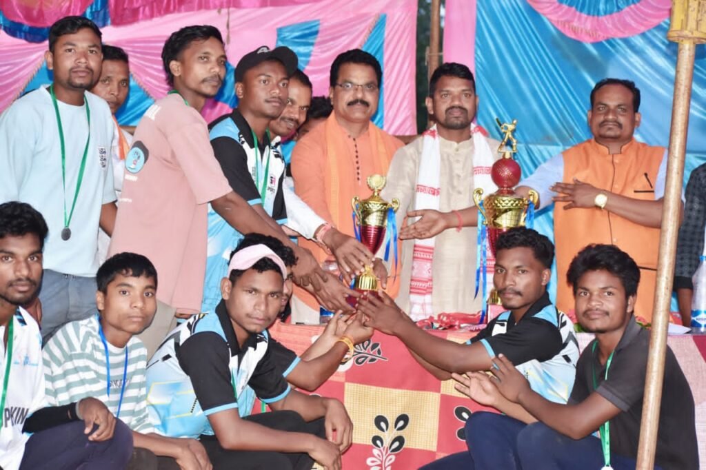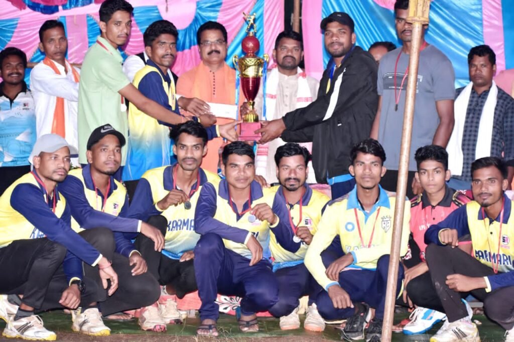 हरवेल/फरसगांव ~ कोंडागांव जिले के विकासखण्ड बड़ेराजपुर अंतर्गत ग्राम पंचायत तितरवंड के आश्रित ग्राम पिटीसपाल स्थित गोंडवाना मैदान में महासंग्राम क्रिकेट क्लब पिटीसपाल की ओर से नवरात्रि के पावन पर्व पर छः दिवसीय पंचायत स्तरीय क्रिकेट प्रतियोगिता का आयोजन किया गया था जिसका फाइनल मुकाबला शुक्रवार 3 अक्टूबर को करमरी और पिटीसपाल के मध्य खिताबी मुकाबला खेला गया जिसमें पिटीसपाल ने टास जीतकर पहले बल्लेबाजी करते हुए निर्धारित 6 ओवरों में 37 रन बनाने में कामयाब रही और लक्ष्य का पीछा करते हुए करमरी की टीम आसानी से जीत हासिल कर ली मुख्य अतिथि जिला पंचायत उपाध्यक्ष हीरासिंह नेताम ने बताया कि मौसम के अचानक बदलाव के कारण फाइनल मैच देखने को मिला और दोनों टीमों ने शानदार प्रदर्शन किया सभी टीमों को बहुत बहुत बधाई दी गई जानकारी के अनुसार यह मैच 22 सितम्बर को शुरू हुआजिसमें प्रथम पुरस्कार 20000 रू और द्वितीय पुरस्कार विजेता 10000 रू ट्राफी दिया जाएगा और प्रवेश शुल्क 899 रू रखा गया है था जिसमें प्रथम पुरस्कार विजेता करमरी को भुतपुर्व विधायक केशकाल सेवकराम नेताम के द्वारा 20000 रू और चमचमाती ट्राफी दिया गया उपविजेता टीम पिटीसपाल को 10000 रू जिला पंचायत उपाध्यक्ष कोंडागांव हीरासिंह नेताम के द्वारा दिया गया जिसमें प्रमुख रूप से मौजूद रहे मुख्यअतिथि भुतपूर्व विधायक केशकाल सेवकराम नेताम, जिला पंचायत कोंडागांव उपाध्यक्ष हीरासिंह नेताम, उपसरपंच मंगूराम नेताम, लालसाय, हिराऊ यादव, फूलसिंह नेताम, मानकु नेताम, वासुदेव , दिगेश्वर मंडावी क्रिकेट समिति के अध्यक्ष मोतीराम नेताम, उपाध्यक्ष मंगऊराम सचिव तोरन शोरी, कोषाध्यक्ष प्रकाश नेताम, संरक्षक बिरेश नेताम मनोज, लखन, हरीशचंद, हरिलाल, कमलेश, राहुल, सोहनलाल, धनु, प्रकाश, नोगेश, फुलदास, और ग्रामवासी ग्राम के गणमान्य नागरिक बड़ी संख्या में क्रिकेट प्रेमियो की मौजूदगी रही|