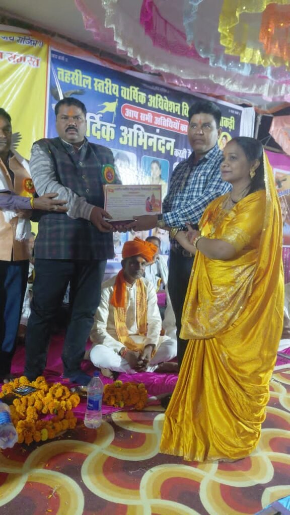विश्रामपुरी/बड़ेराजपुर ~ कोंडागांव जिले के बड़ेराजपुर विकासखंड अंतर्गत ग्राम पंचायत मारंगपुरी में परिक्षेत्र विश्रामपुरी/माकड़ी के साहू समाज द्वारा आयोजित वार्षिक अधिवेशन में केशकाल विधानसभा के पूर्व विधायक संतराम नेताम बतौर मुख्य अतिथि शामिल हुए। इस दौरान साहू समाज के द्वारा सर्वप्रथम भव्य शोभायात्रा निकाली गई, सभी अतिथियों का तिलक चंदन से स्वागत किया गया। तत्पश्चात संत शिरोमणि भक्त माता कर्मा की पूजा व आरती की गई। कार्यक्रम के मुख्य अतिथि संतराम नेताम ने कहा कि प्रतिवर्ष की भांति इस वर्ष भी साहू समाज द्वारा वार्षिक सम्मेलन का कार्यक्रम रखा गया है, जिसमें मुझे भी आमंत्रित किया गया था